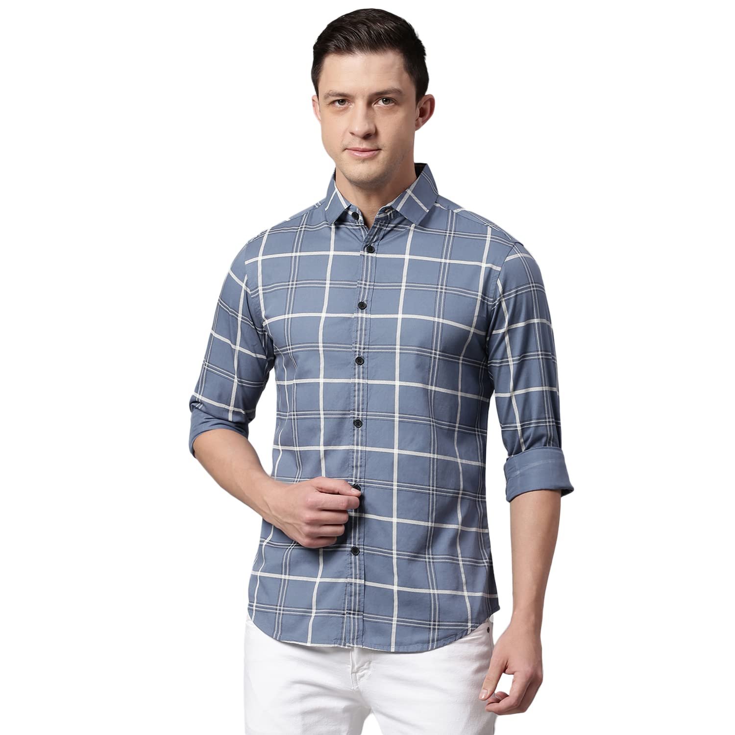 Brand: Majestic ManColor: GreyFeatures: Fabric - Premium Cotton, Pre-Washed for extremely soft finish and No Shrinkage Post Washingshirt has a regular spread collar, button placket, and one patch pocket. Long sleeves with buttoned cuffs for an adjustable fit. The curved hem adds a touch of sophistication.Occasion: Ideal for casual wear, weekend outings, and smart-casual events.Style Tips: Pair this Checked shirt with your favorite jeans or chinos for a relaxed yet stylish ensemble. Add a pair of loafers or casual sneakers to complete the look, perfect for weekend outings, casual Fridays at work, or laid-back gatherings.Features a slim fit design that provides a modern and stylish look without compromising on comfort.Package Dimensions: 32x237x230