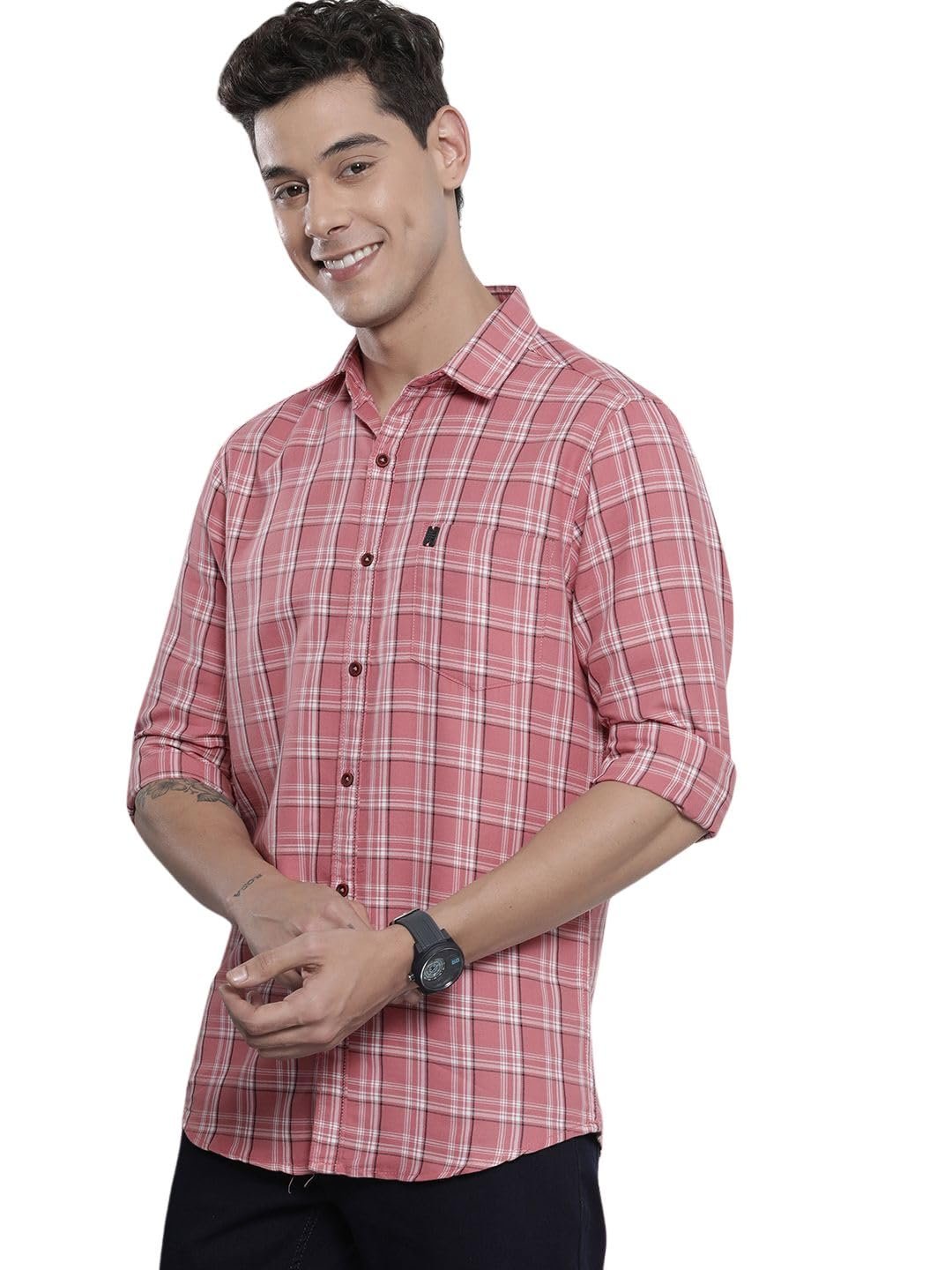Brand: The Indian Garage CoColor: PinkFeatures: Comfort : This light weight breathable premium 100% Cotton soft and smooth fabric designed to enhance comfort without compromising style. This Shirt is crafted to move seamlessly with the body, ensuring that you feel at ease throughout the day.Model Height & Size: The model is 5'11" tall and is wearing a size M.Size Guide: S-38, M-40, L-42, XL-44, 2XL-46Features: Regular Fit Checkered Casual Shirt for Men with a Cutaway Collar, Full Sleeves, Regular Length. Designed with a Curved Hemline, 1 Patch Pocket, and a Button closure. Whether you’re dressing for a casual day out, a formal event, a business meeting, a party, birthday, wedding, anniversary, or any special celebration, our collection promises the perfect...