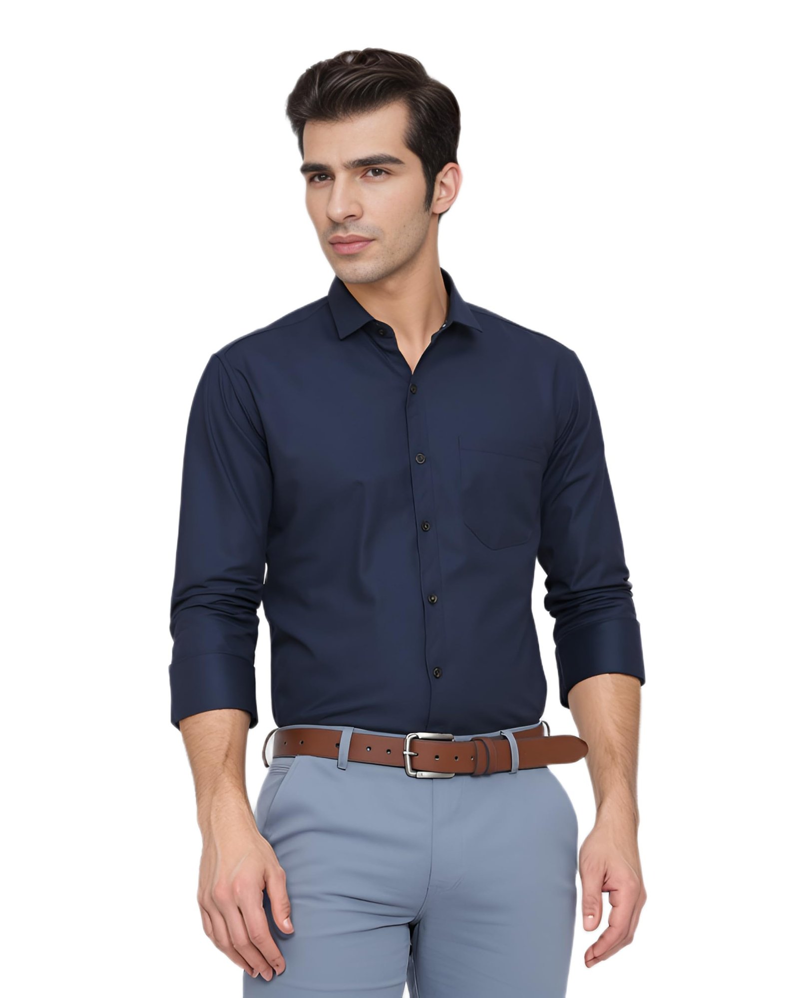 Brand: YSYB Dezines Color: Dark blue Features: Tailored for Versatility – This full-sleeve shirt is ideal for formal office wear, casual meetings, and even party occasions. Comfortable Smart Fit with One Pocket – Features a structured design with a single front pocket, offering both style and functionality. available in Sizes 36 to 44 – Designed to fit a range of body types, perfect for young professionals and gentlemen alike. Style It Your Way – Pair it with formal trousers, jeans, or chinos for a polished look, whether you're at work or out at night. Package Dimensions: 30x200x300