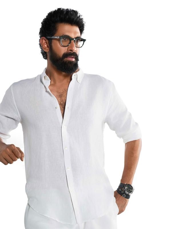 Brand: KINGDOM OF WHITEColor: WhiteFeatures: Fabric Type: Crafted from 100% European 60's linen, this shirt is soft to the touch and breathable, making it perfect for warm weather. Linen is naturally cool, lightweight, and moisture-wicking, ensuring all-day comfort. The 14 stitches per inch provide durability, ensuring this shirt withstands regular wear. Ideal for sunny vacations or casual outings, the fabric feels light on the skin, making it a must-have for your summer wardrobe.Features: This linen shirt features a stylish button-down collar and rounded cuffs with a box pleat and loop at the back for added flair. The soft European 60's linen offers a premium texture that is both breathable and durable. With 14 stitches per inch, the shirt is designed...