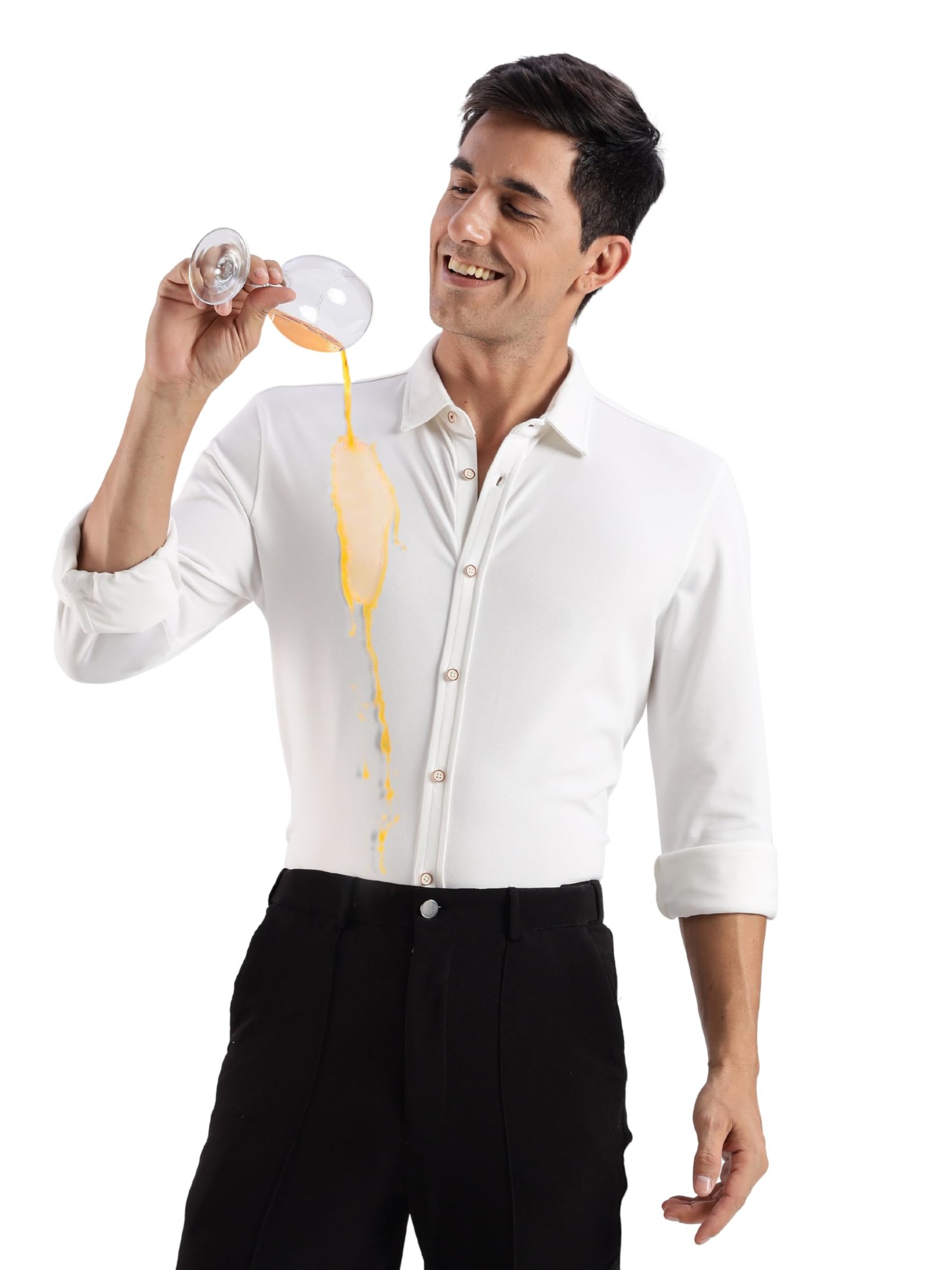 Brand: TURMSColor: WhiteFeatures: 8-WAY SMART STRETCH : Experience unparalleled flexibility with our 8-way stretch knitted shirt. Designed to move effortlessly in every direction, this shirt offers maximum comfort and freedom, ensuring a perfect fit that adapts to your every move.ANTI STAIN : Our products are designed to resist the absorption of water-based stains, such as those from tea and coffee. We have added special coatings that repel liquids and make it easier to remove stains while wiping them.ANTI ODOR : Our products are treated to prevent the growth of bacteria, which can cause unpleasant smell. Our products are moisture-wicking and quick-drying, which can help to reduce the buildup of bacteria and odors.WATER REPELLENT : The treatment on our products creates...