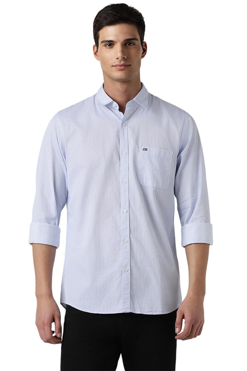 Brand: Peter EnglandColor: Light BlueFeatures: Product Type: Full Sleeves Casual ShirtGender: MenOccasion: CasualFit: Slim FitSleeve: Full SleevesPackage Dimensions: 57x317x290Details: Description This Brown Print Casual shirt from Peter England Casuals is tailored in Slim Fit. Crafted in 100% Cotton features a Regular Collar and Full Sleeves .