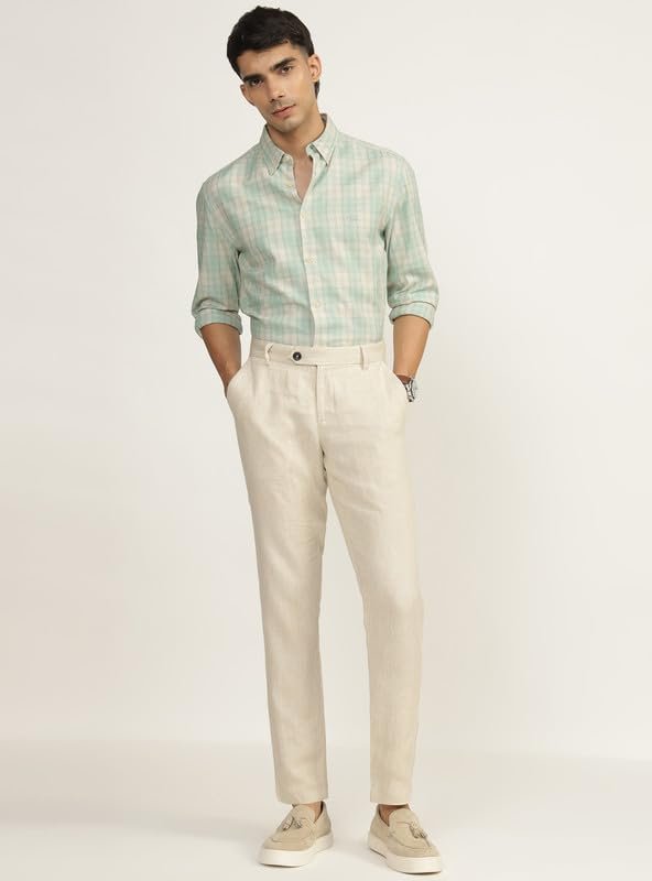 Andamen Casual Men’s Green Cotton Melange Slim Fit Shirt