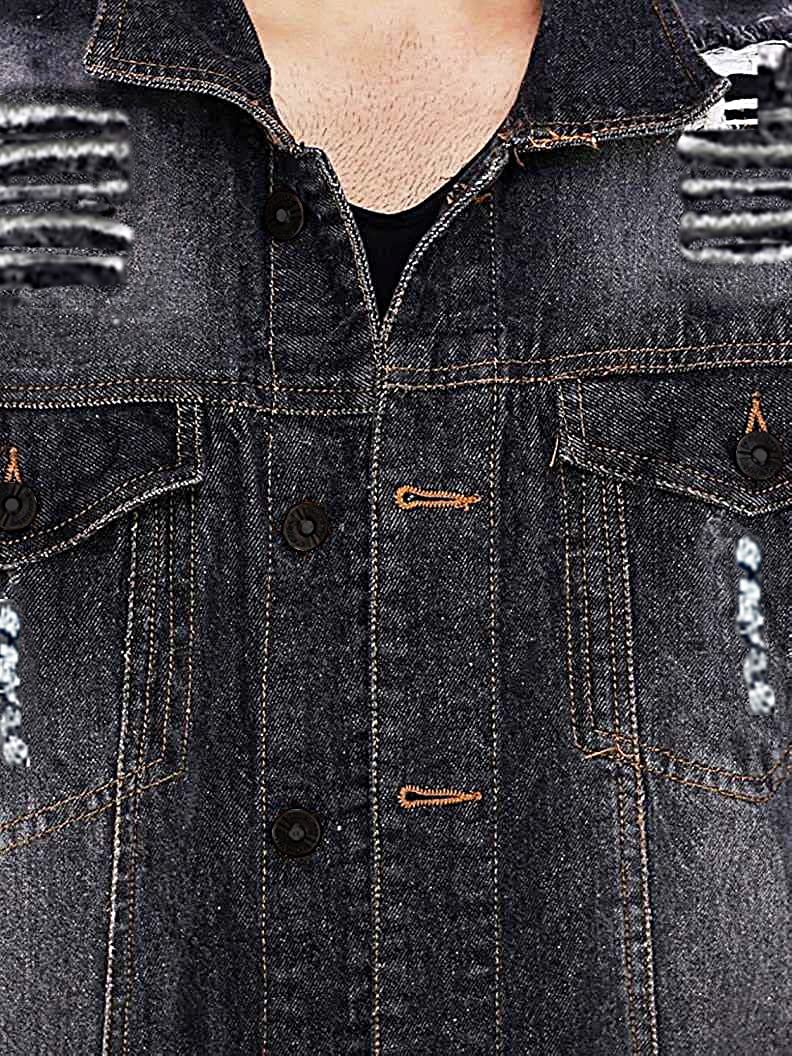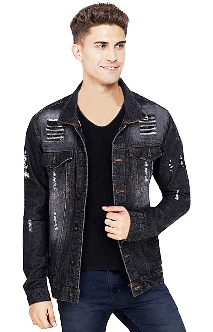 - Stylish Denim Jacket ; Trendy Heavy Washed Pattern; 100% Mercerised Denim Cotton Fabric ; Regular Fit ; Buttoned Full-Front Opening ; Slim Collar