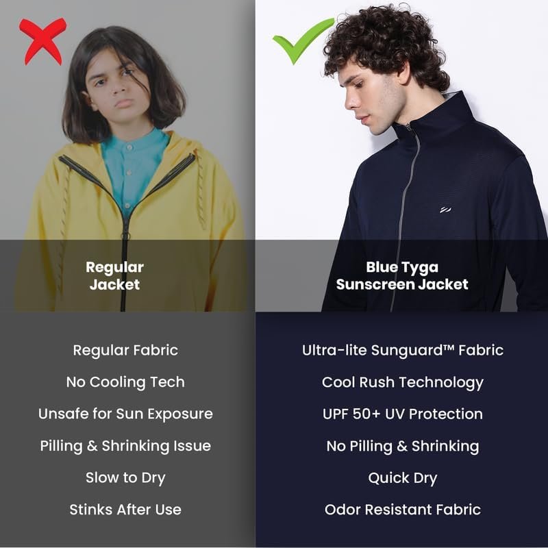 - UPF 50+ fabric technology: The fabric of the jacket is treated with a special sunscreen that blocks 98% of harmful UV rays. This helps to protect your skin from sunburn, and skin tanning.