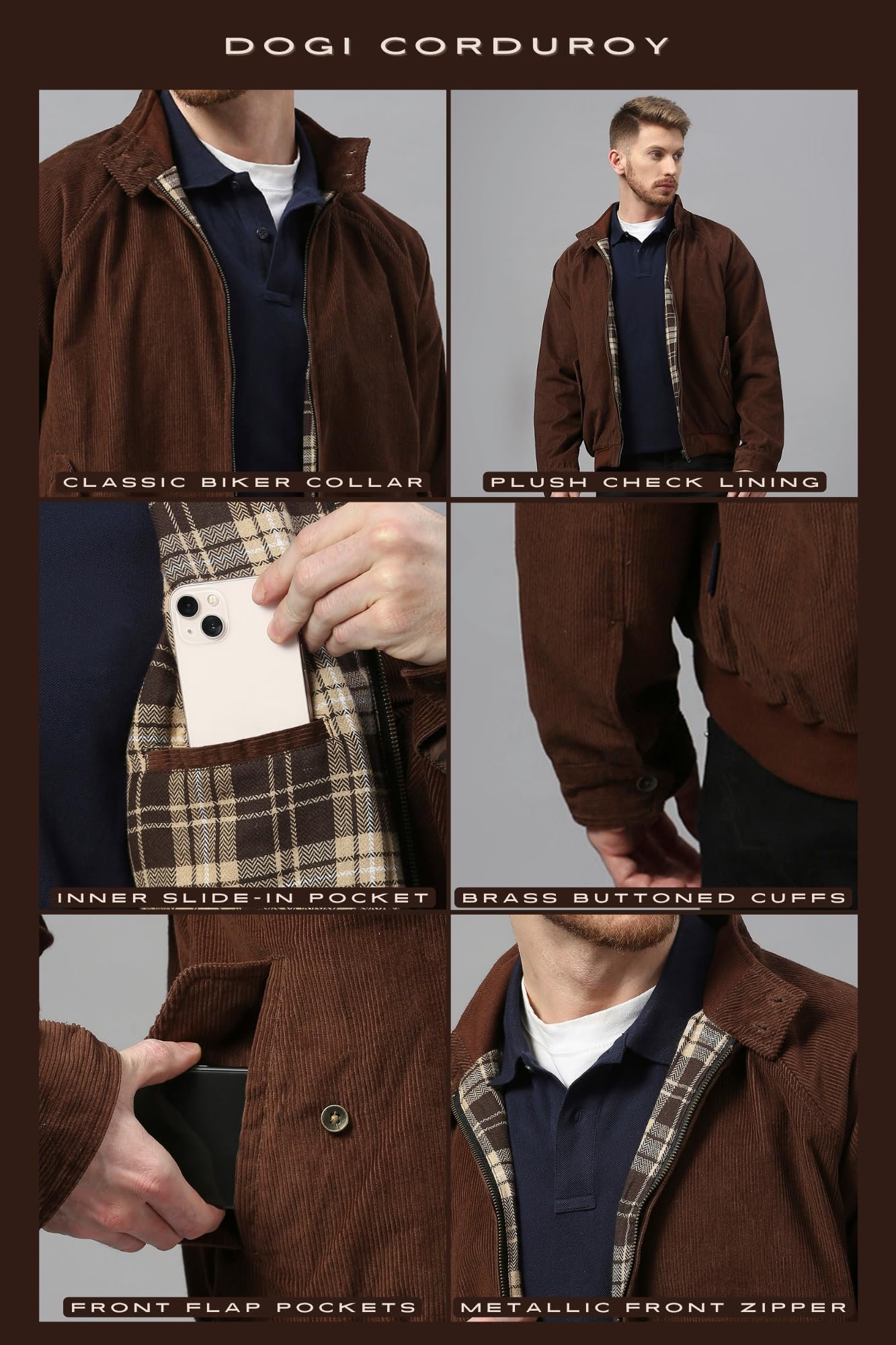 - Retro Charm Redefined: Embrace nostalgia with every wear, adorned with the DOGI Signature Flag Label and brass-buttoned cuffs, adding a touch of vintage-inspired sophistication that sets you apart effortlessly.