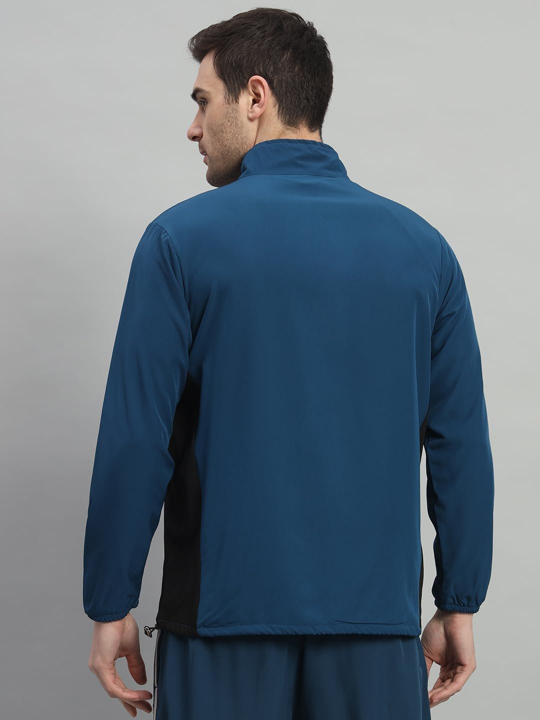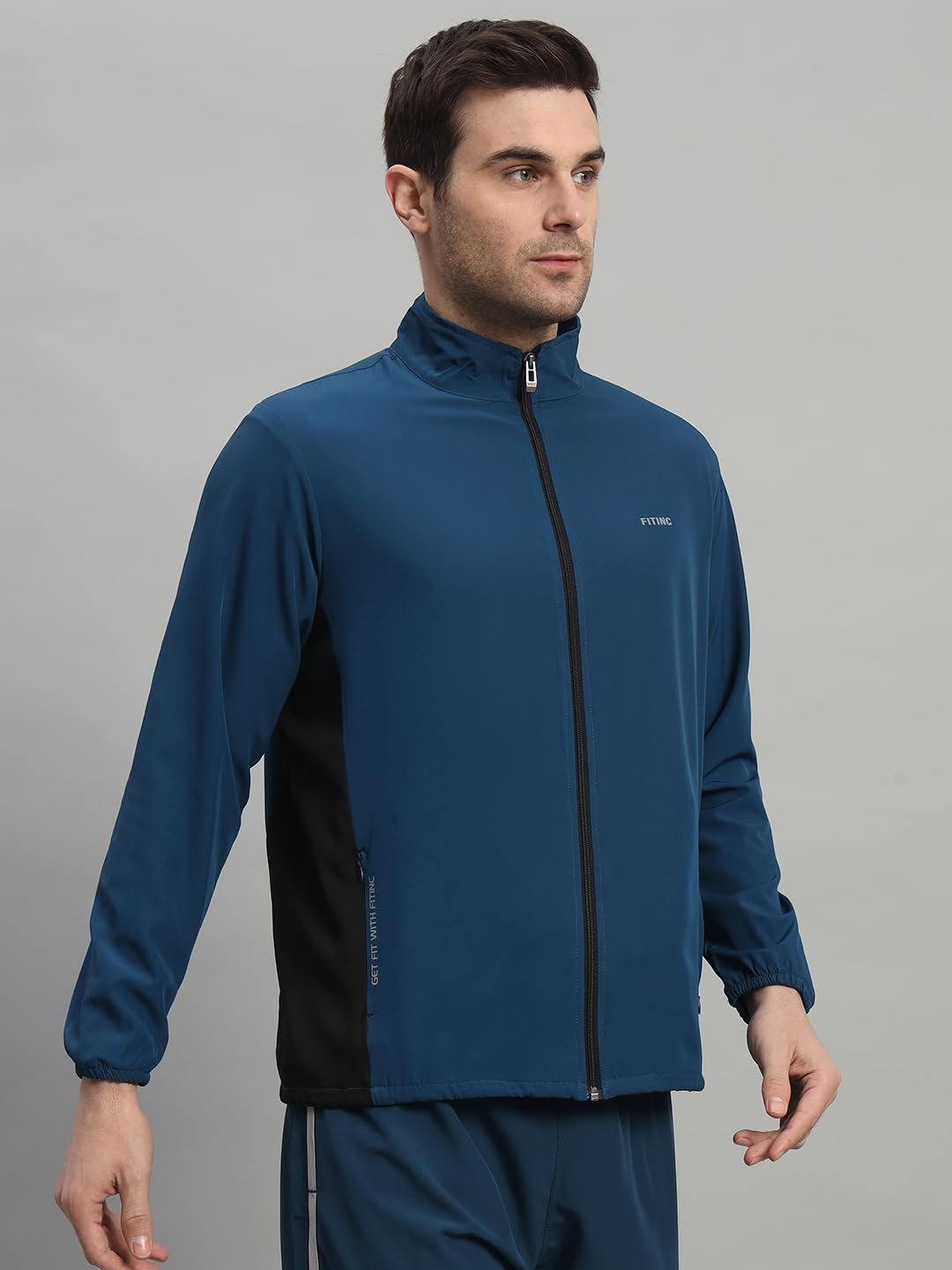FITINC Polyester Contrast Panel Sports Track Jacket for Men – Blue(Small)