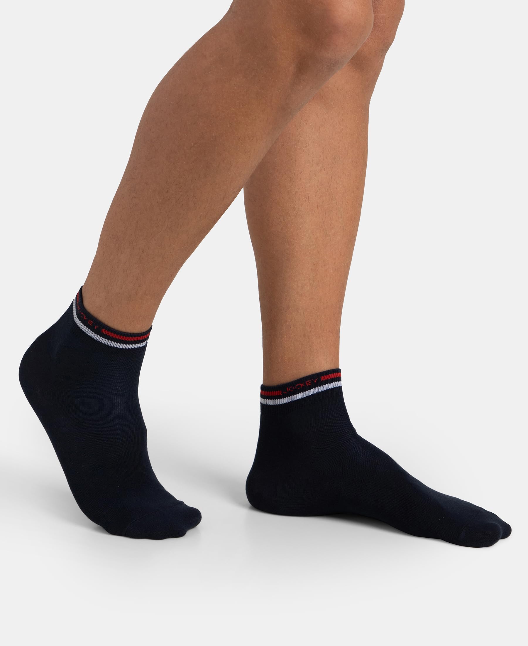 Jockey 7002 Men’s Compact Cotton Stretch Ankle Length Socks with Stay Fresh Treatment (Pack of 2)_Navy_FREE SIZE