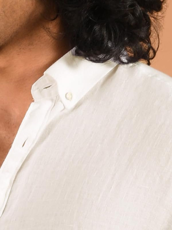 Made from the softest European 60’s lea linen, it’s designed to keep you feeling cool and breezy. Perfect for those sun-soaked days when you want to feel cool and look even cooler, this pure linen shirt is an ideal pick for your next staycation. The breathable linen fabric lets your skin breathe and keeps things light, making it your ultimate go-to when the weather calls for something relaxed and breathable. Crafted with precision, this shirt features 14 stitches per inch, adding that extra durability that you want from your go-to pieces. This shirt is built to last, no matter how many days you throw at it. The button-down collar brings a bit of polish to the mix, but it’s still casual enough to wear anywhere—from beachside bars to an afternoon lunch on the terrace. The collar sits just right, keeping things neat without ever feeling too stiff or formal. The rounded cuffs are another thoughtful detail that adds a bit of fun to the design. Featuring a box pleat and loop at the back, these cuffs give the shirt a relaxed, tailored finish that feels intentional but still laid-back. Whether you roll them up or leave them down, they add a small but noticeable touch that elevates the shirt without making it look overdone. It’s these kinds of details that make this shirt feel like it’s been crafted with care, yet still perfect for those days when you don’t want to think too much about what you’re wearing. For the perfect look, pair this shirt with relaxed trousers and loafers. The easy fit of the shirt works beautifully with the flowy nature of the trousers, creating a look that’s equal parts chill and put-together. Add the loafers to the mix, and you’ve got yourself a laid-back ensemble that’s ready for everything from seaside brunches to a casual evening out.