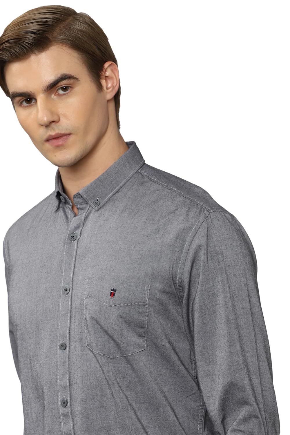 Showcase your refined sartorial taste in this Grey Textured shirt from Louis Philippe Sport at a Casual event. Tailored in Slim Fit , this shirt features a Button-down Collar , Full Sleeves , and is crafted from exquisite 100% Cotton.