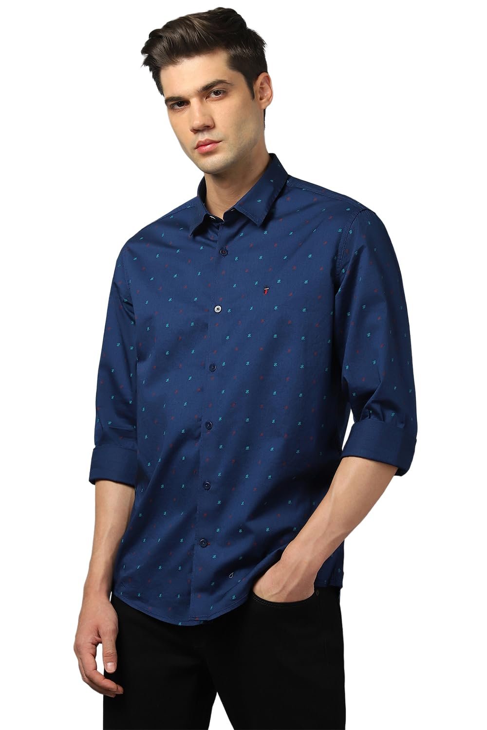 Infuse your casual wardrobe with a dash of charm with our Louis Philippe Sport men`s navy slim-fit printed shirt. With a sophisticated print, this shirt is perfect for casual occasions and the 100% cotton material makes it both comfortable and high-quality. Our shirt maintains the brand`s signature style and it’s the ideal choice for a fashion-forward look. Take your casual style up a notch with this stylish and easy-to-wear Louis Philippe Sport slim-fit printed shirt.