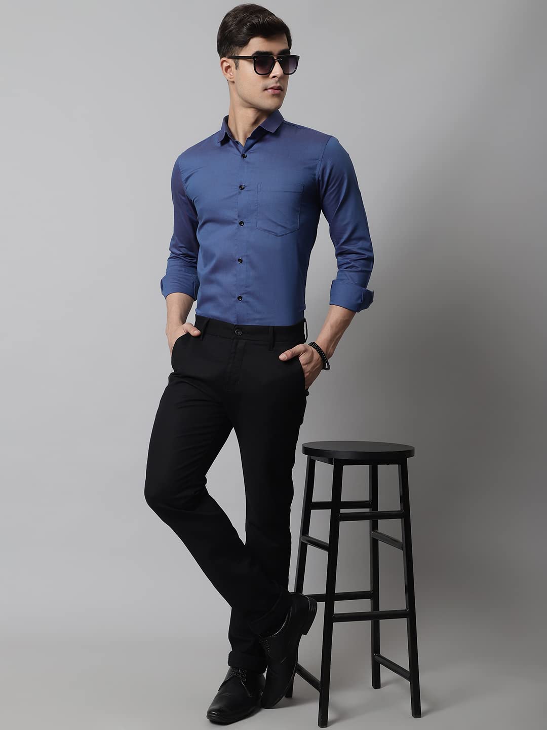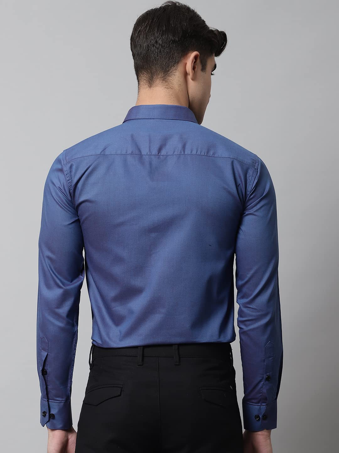 Majestic Man Men Slim Fit Solid Cotton Blend Formal Shirt (Large, Blue)