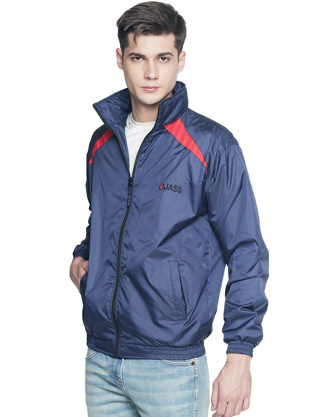 OJASS Polyester Men’s Solid Standard Length Regular Jacket (Ocsbjf-Nb_Rd-S_Navy & Red_S), Small
