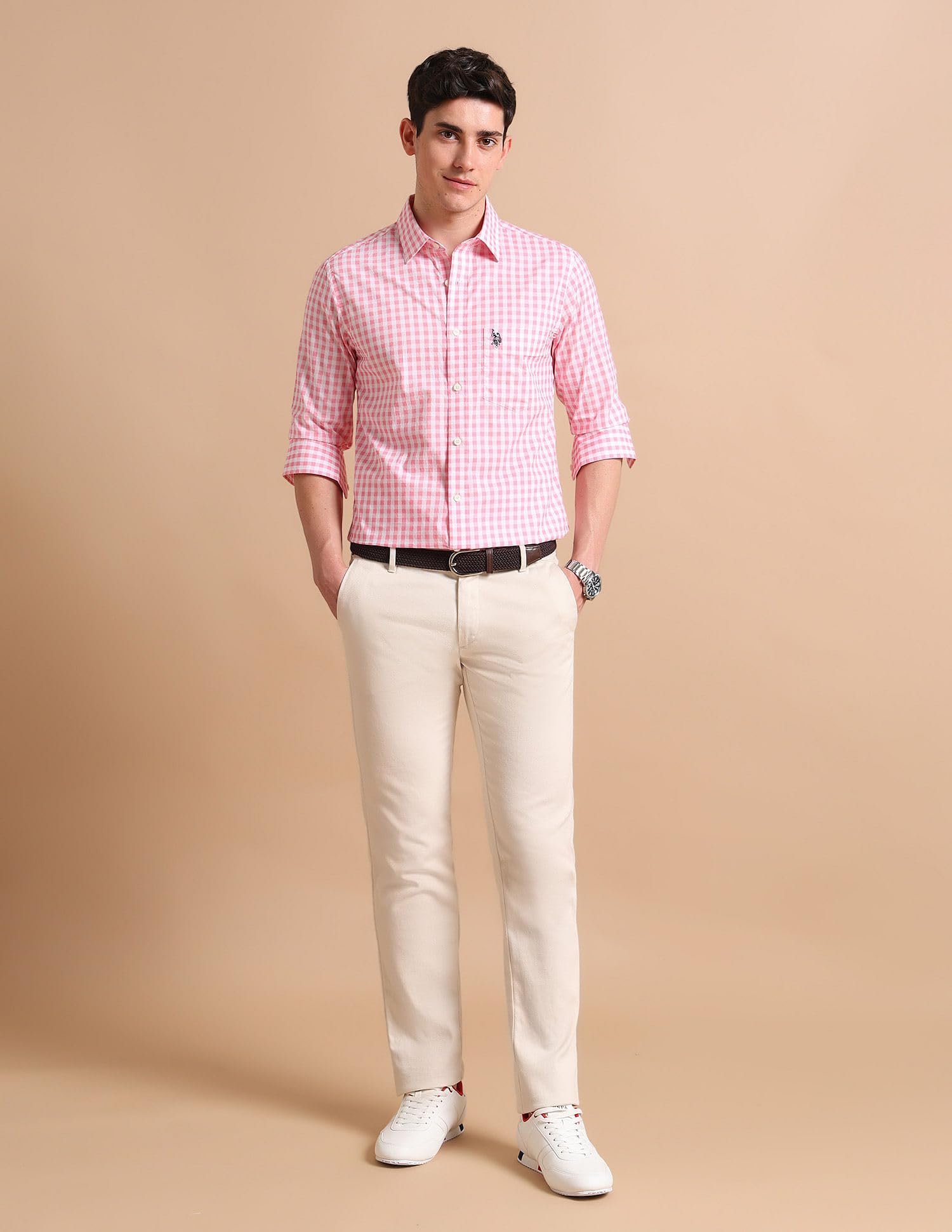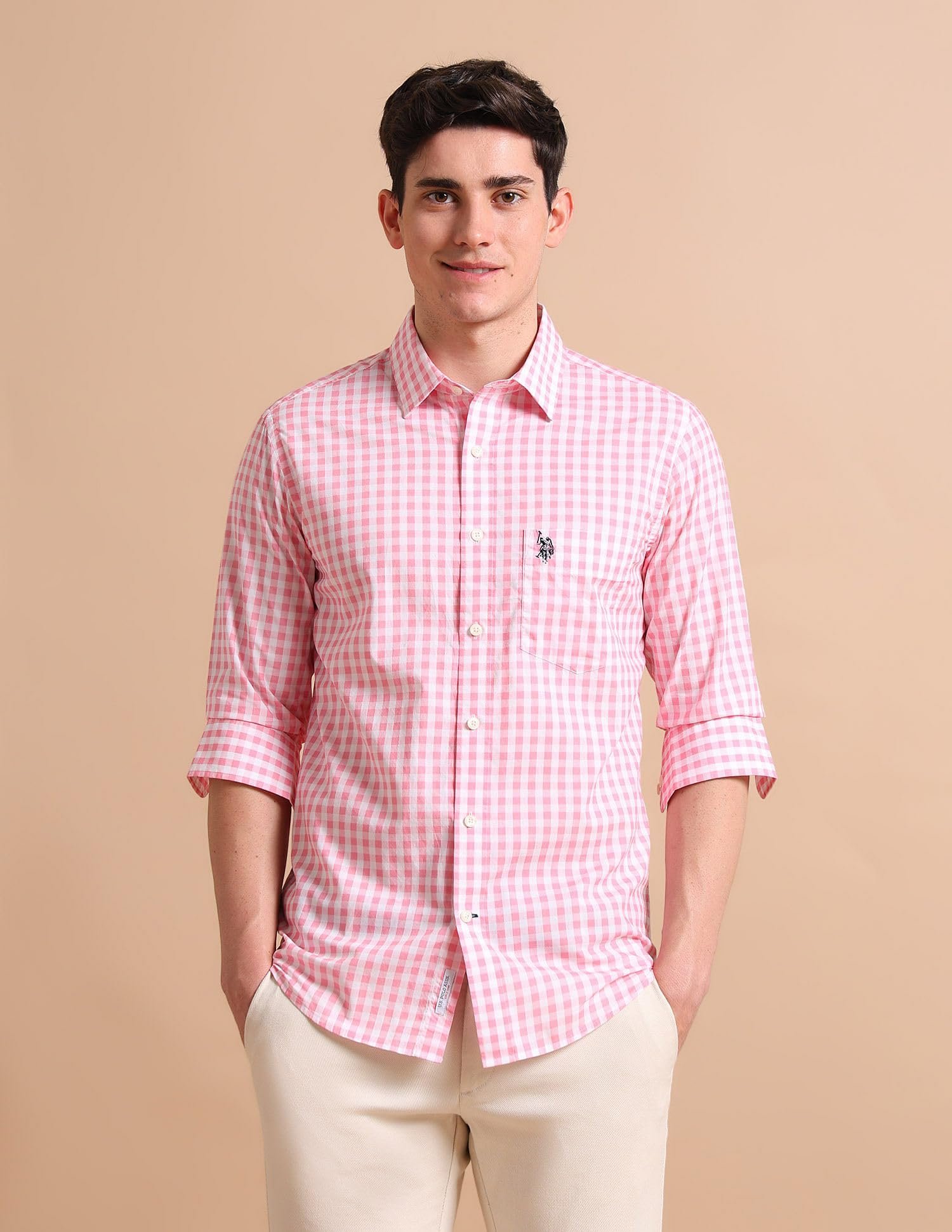 U.S. POLO ASSN. Mens Cotton Checks Fs Regular Fit Shirts (Usshtfx0054_Pink_Medium)