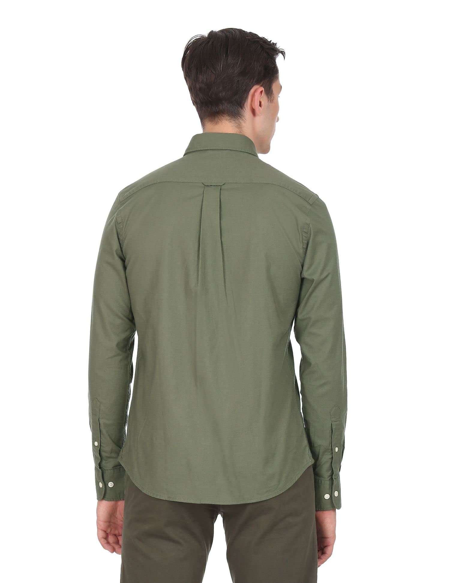U.S. POLO ASSN. Men’s Cotton Oxford Stretch Tailored Fit Spread Collar Casual Shirt (USSHTC0047_Olive_L)