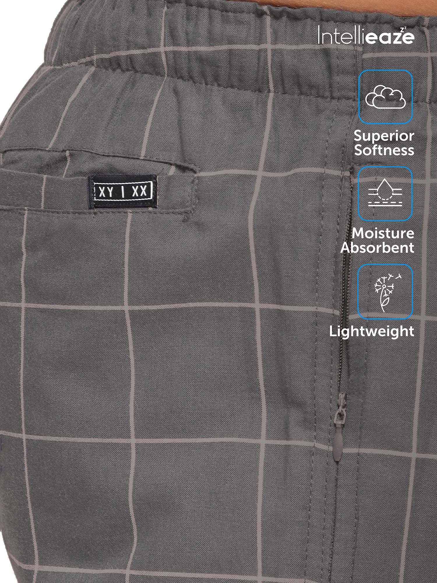 XYXX Men’s Super Combed Cotton Checkered Checkmate Pyjamas [Pack of 1] Elasticated Waist, Drawstring | Loungewear for Men in Grey Checks